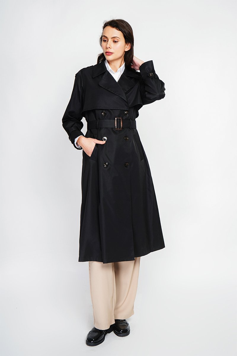Trench a maniche lunghe con linguetta abbottonata e passanti.