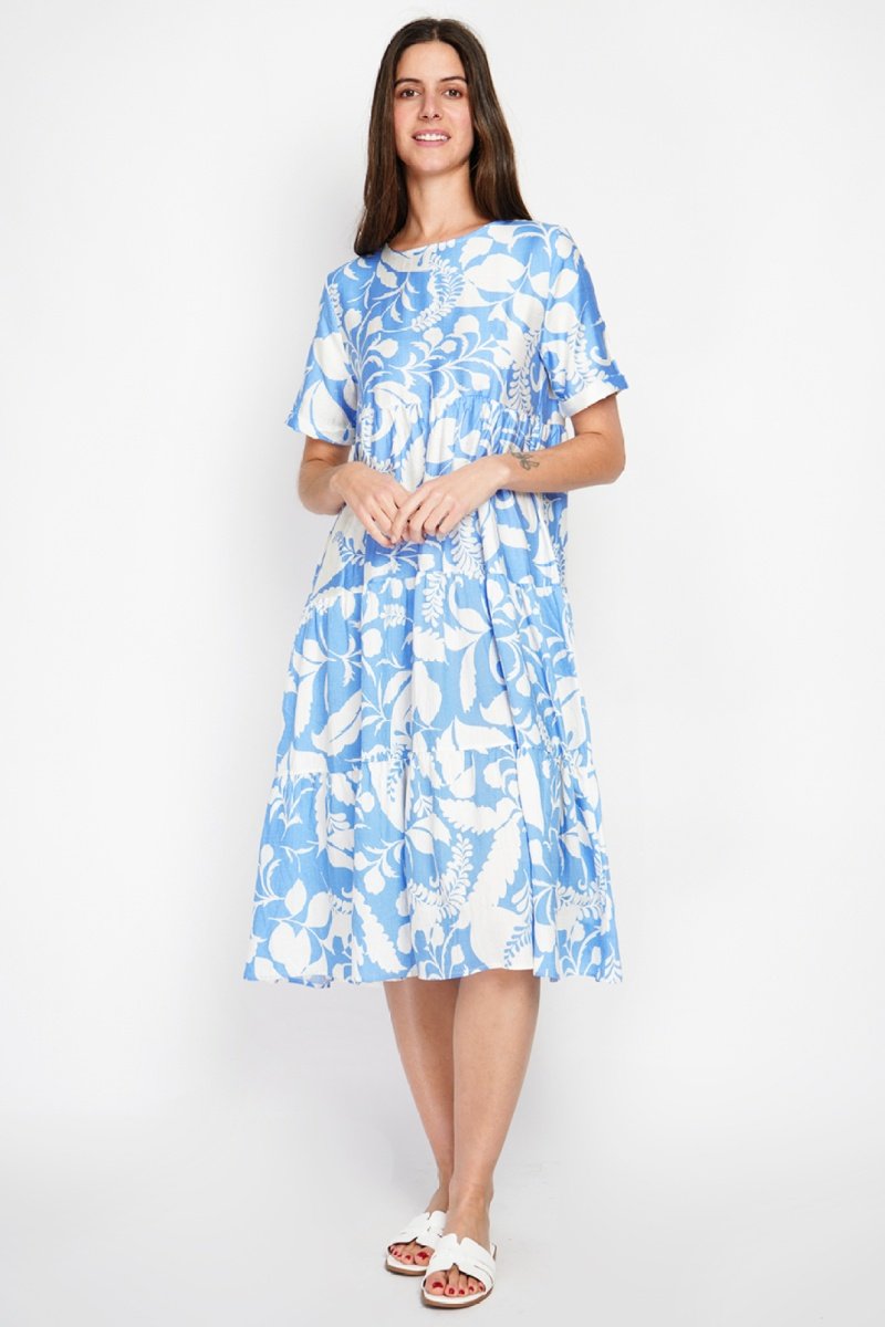 Abito a campana in lino - Blu