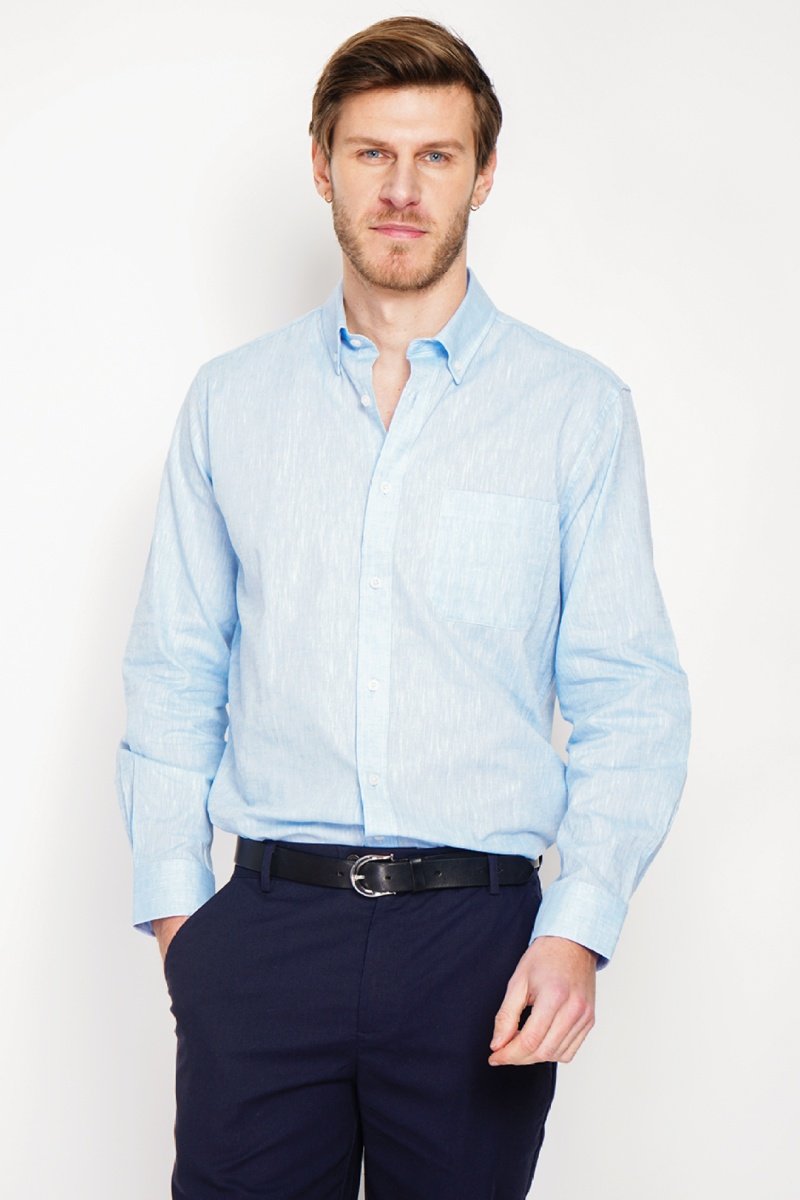 Camicia regular in lino - Blu