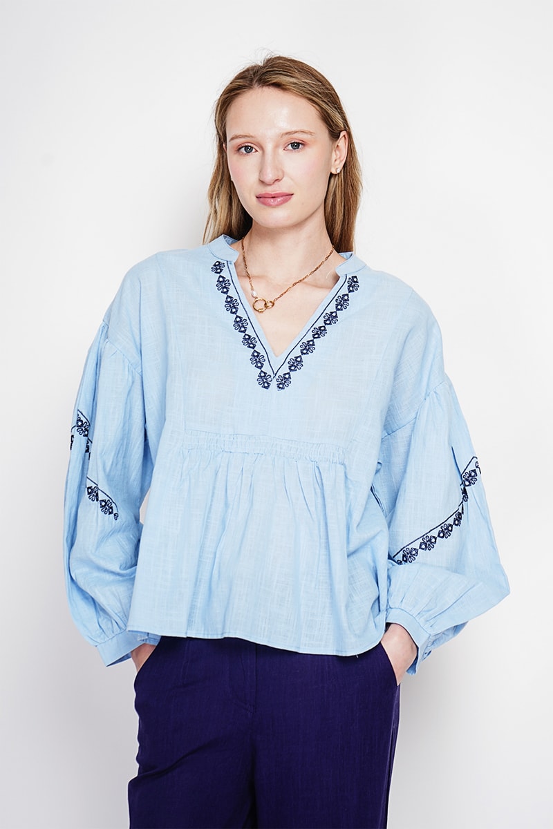 Blusa in lino - Celeste - Blu