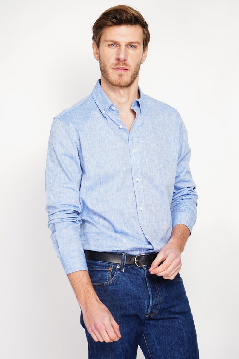 Camicia regular in lino - Blu