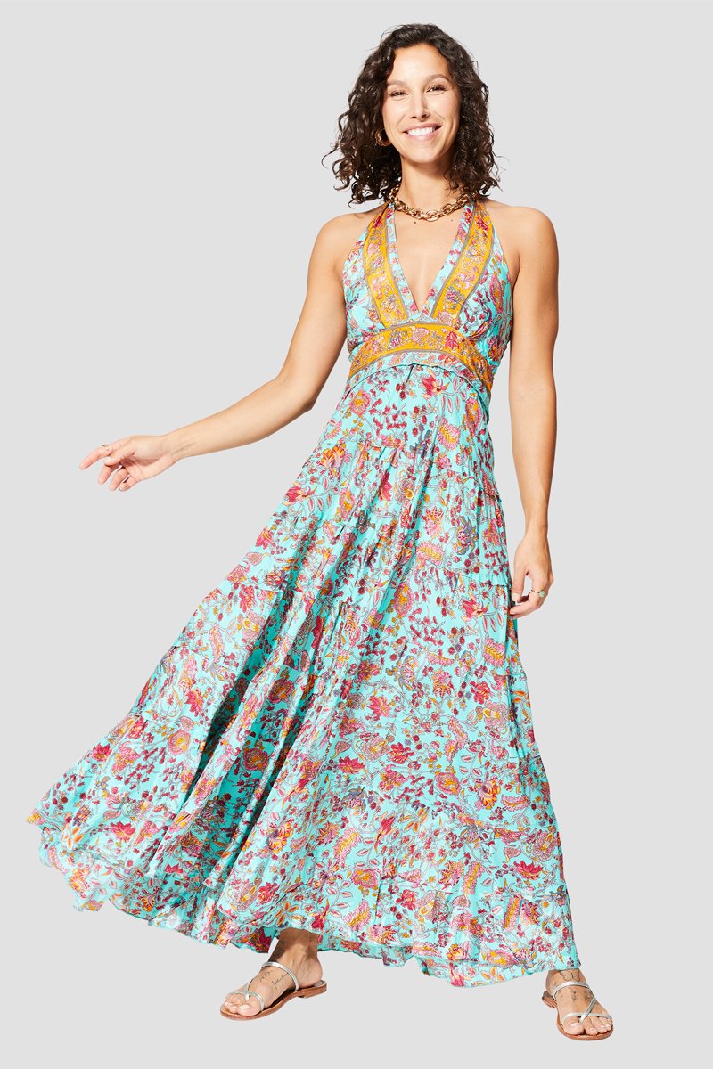 Abito lungo - Rosso, blu e giallo