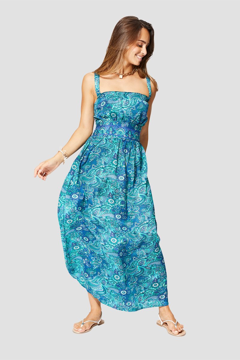 Abito lungo - Bianco, blu e verde