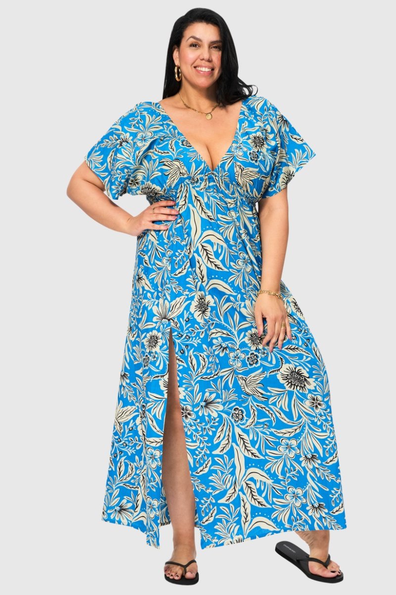 Abito lungo - Nero, beige e blu