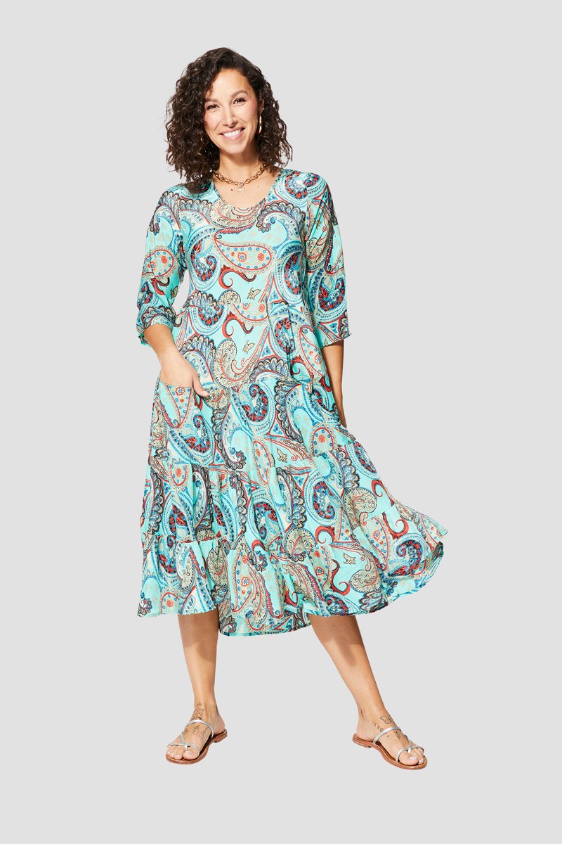 Abito lungo - Bianco, nero e blu
