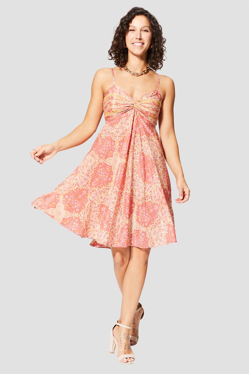 Abito a campana - Bianco, arancione e rosa