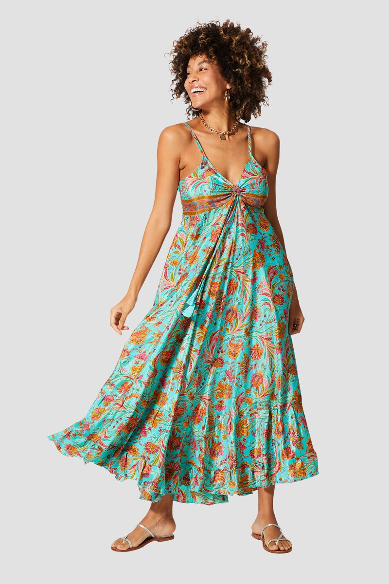 Abito lungo - Bianco, arancione e rosa