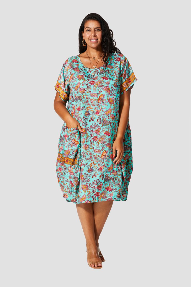 Abito midi - Bianco, rosso e blu
