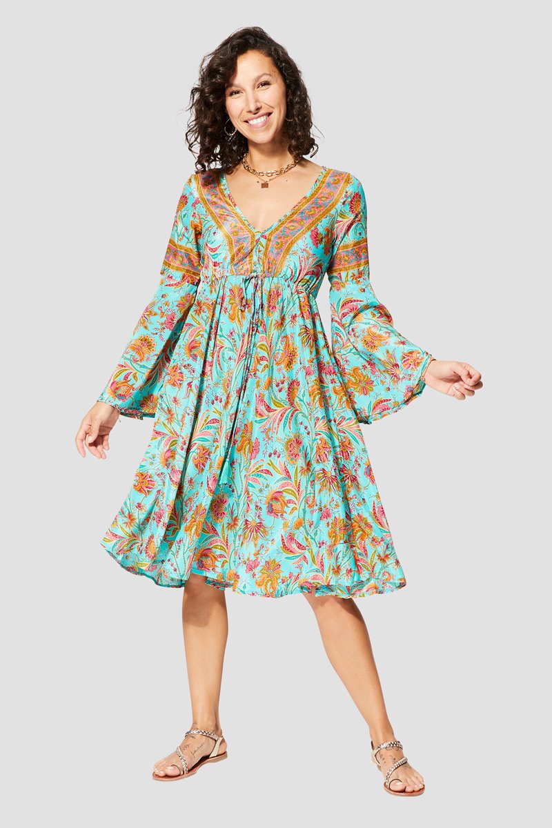 Abito lungo - Bianco, blu e verde