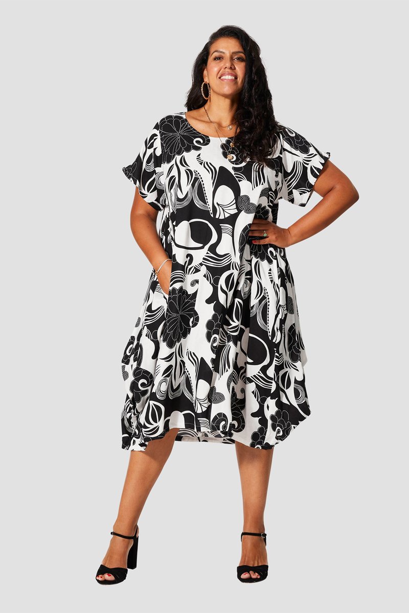 Abito a trapezio midi - Bianco e nero