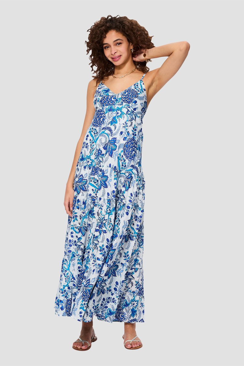 Abito lungo - Bianco, blu e grigio