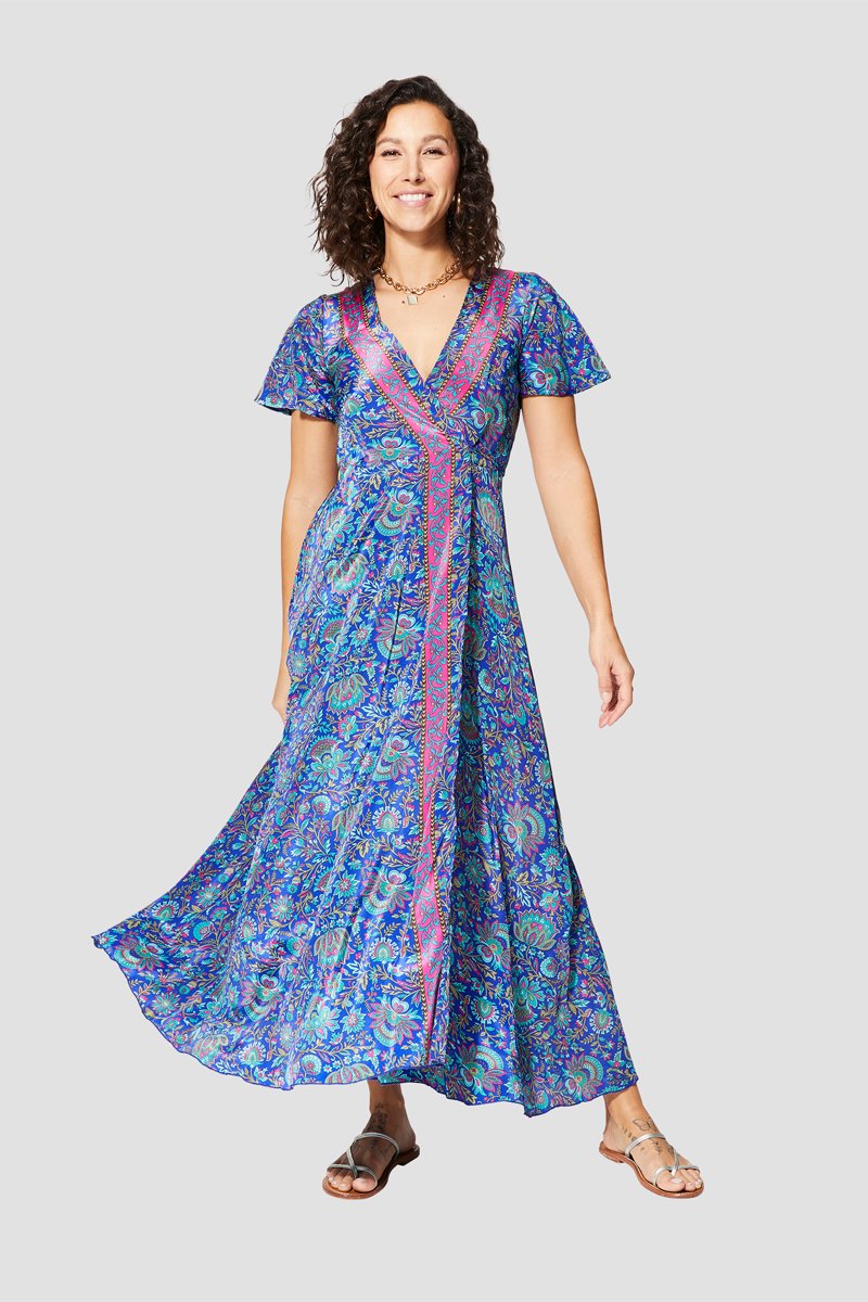 Abito lungo - Bianco, blu e rosa