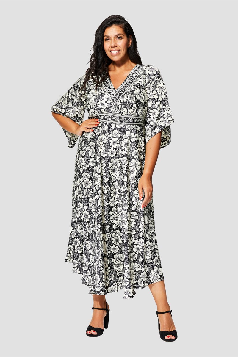 Abito lungo - Bianco, nero e grigio