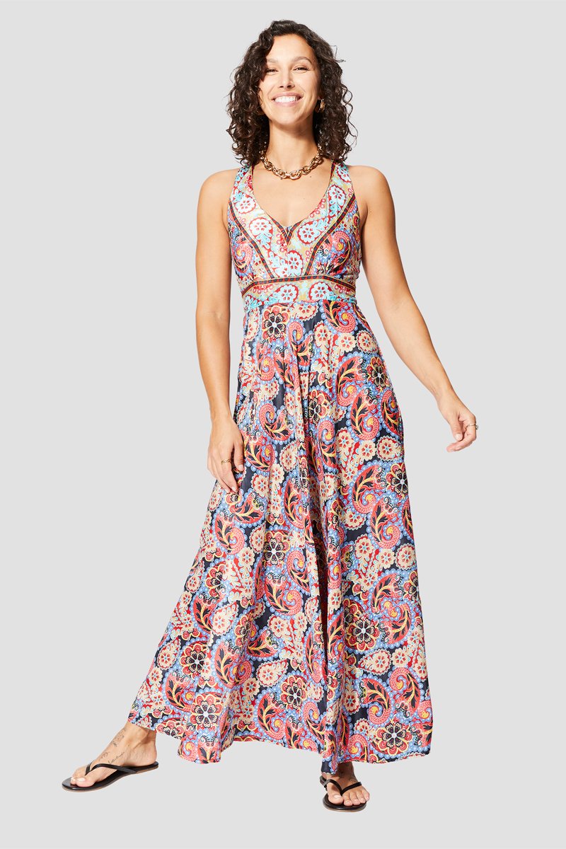 Abito lungo - Nero, rosso e blu