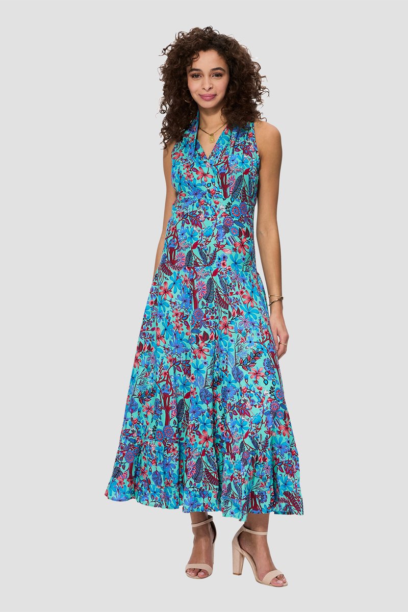 Abito lungo - Blu, verde e rosa