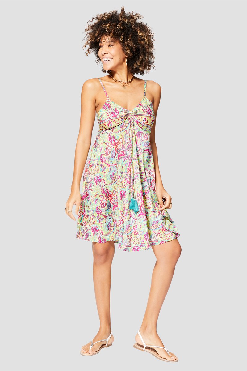 Abito corto - Bianco, verde e giallo