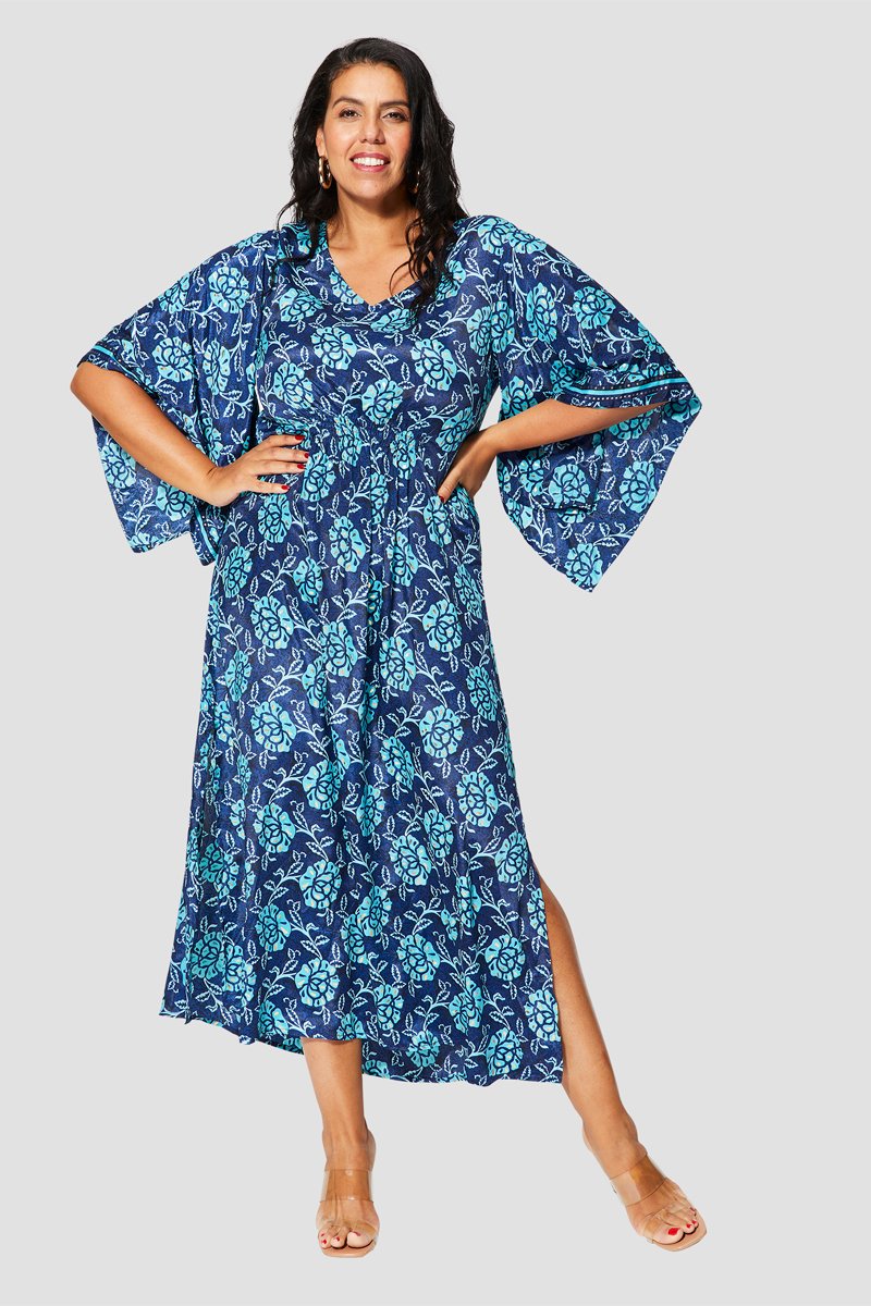 Abito lungo con maniche a pipistrello.