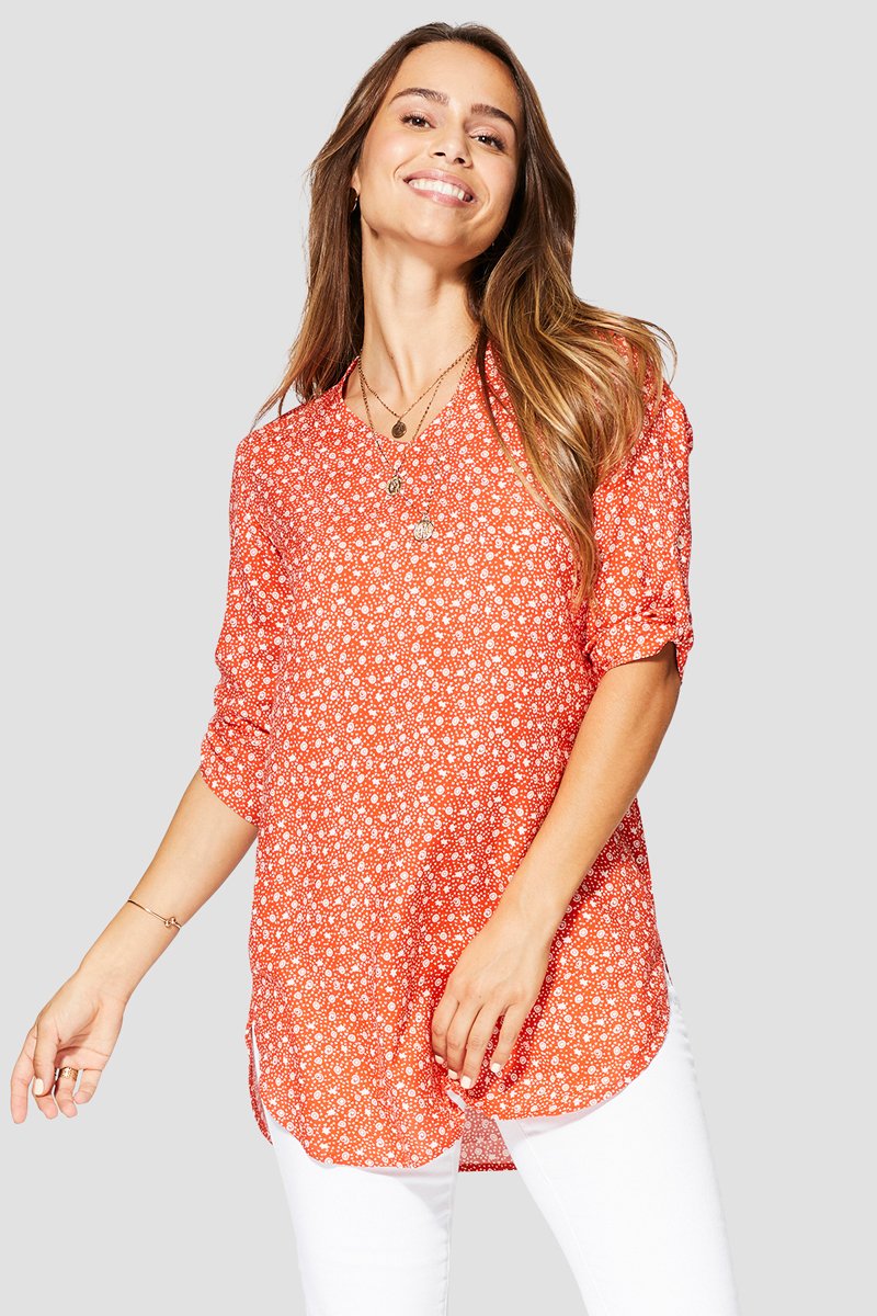 Tunica a maniche mezza lunghezza rimboccabili con linguetta abbottonata.