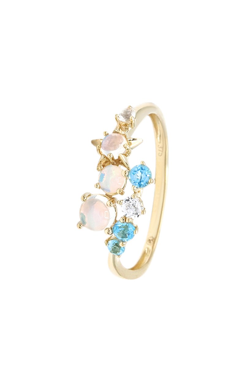 Anello Sedna - Oro giallo, pietre di luna e opali