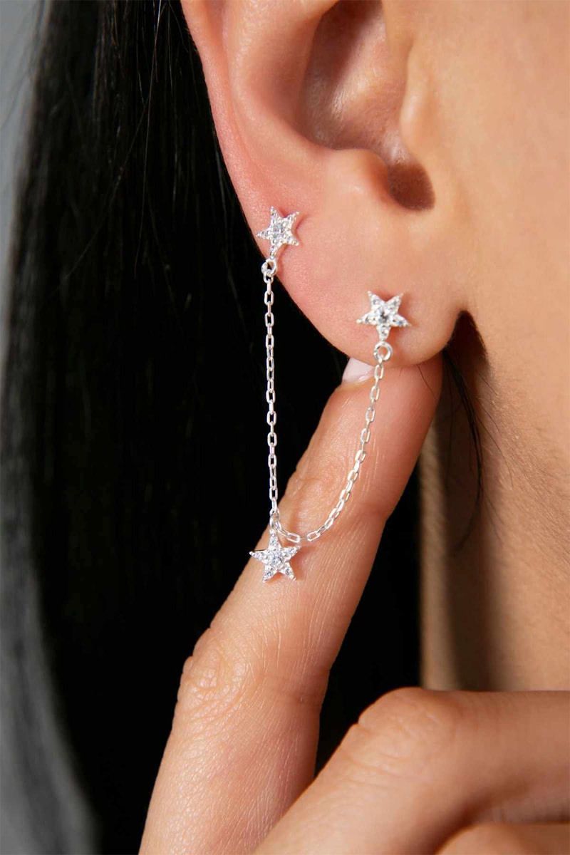 Orecchini con catenina con zirconi.