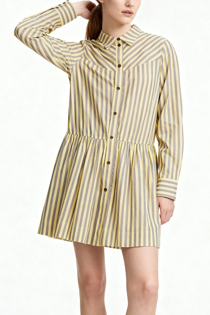 Abito a camicia in cotone bio - Giallo e grigio - Ganni