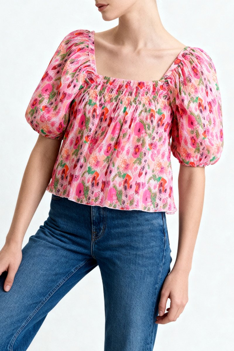 Top con maniche a sbuffo.
