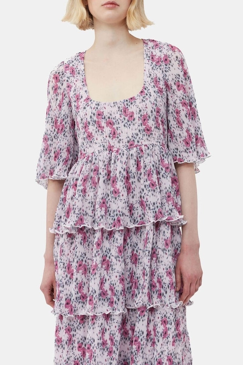 Abito con volant in cotone bio - Malva e fucsia - Ganni