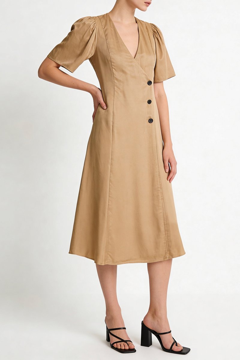 Abito con maniche corte a sbuffo.