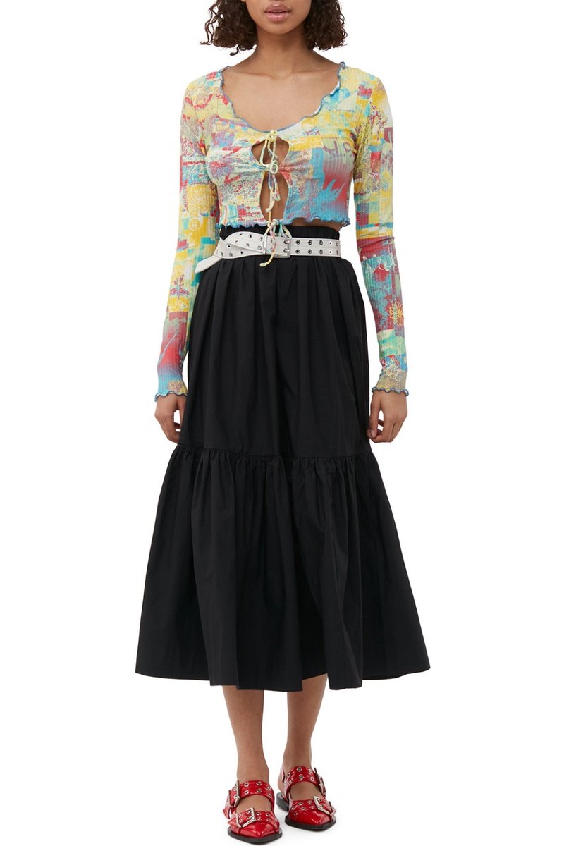 La marca Ganni unisce l'energia scandinava moderna a un tocco di fantasia e audacia, pensato per le donne che vogliono esprimere la propria personalità attraverso lo stile. Occupa una posizione unica tra il lusso accessibile e la moda contemporanea, offrendo capi riconoscibili e raffinati.