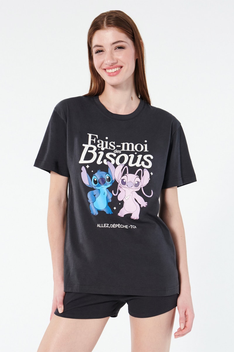 T-shirt Stitch e Angel Lilo & Stitch Disney - Nero