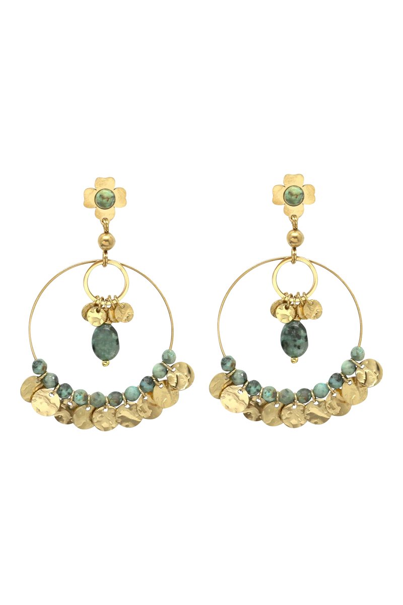 Orecchini pendenti con 12 turchesi africane.