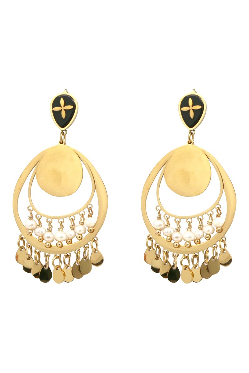 Orecchini pendenti con 7 perle coltivate d’acqua dolce e un’onice.
