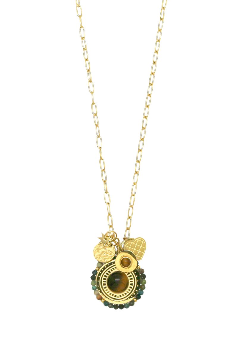 Collana sautoir con una turchese africana e un occhio di tigre.