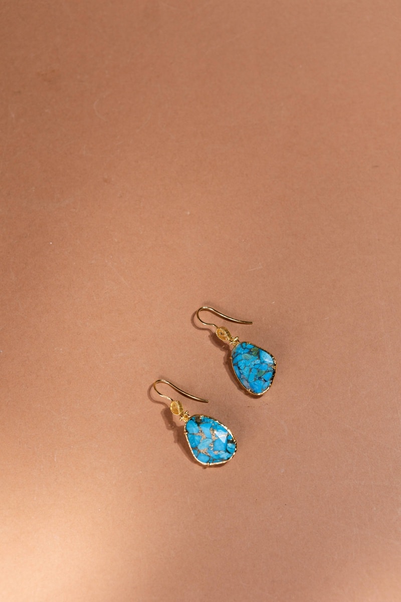 Orecchini laminato oro fino giallo con una turchese mohave.