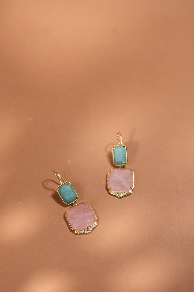 Orecchini laminato oro fino giallo - Quarzo e amazzoniti
