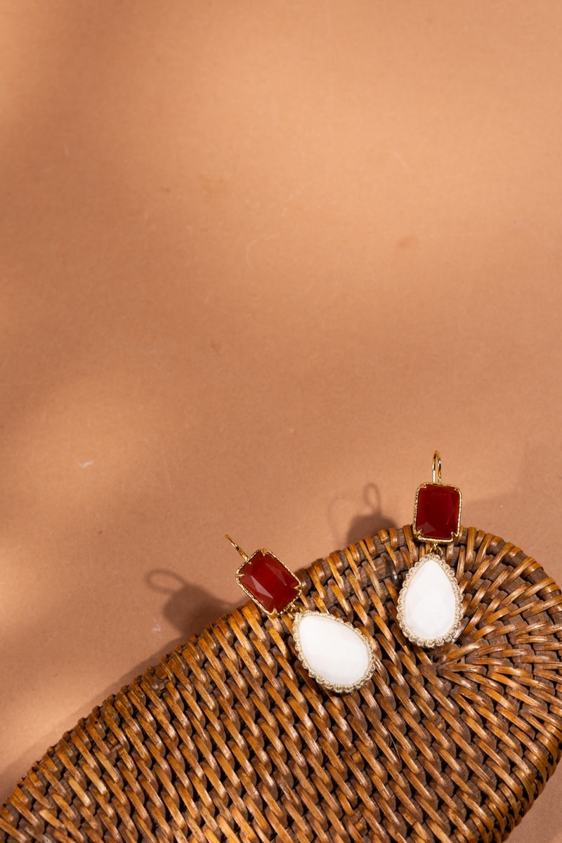 Orecchini laminato oro fino giallo - Madreperla e corniola