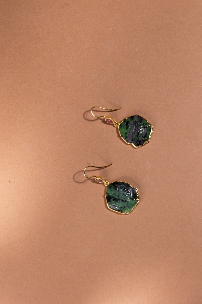 Orecchini laminato oro fino giallo - Rubini zoisite
