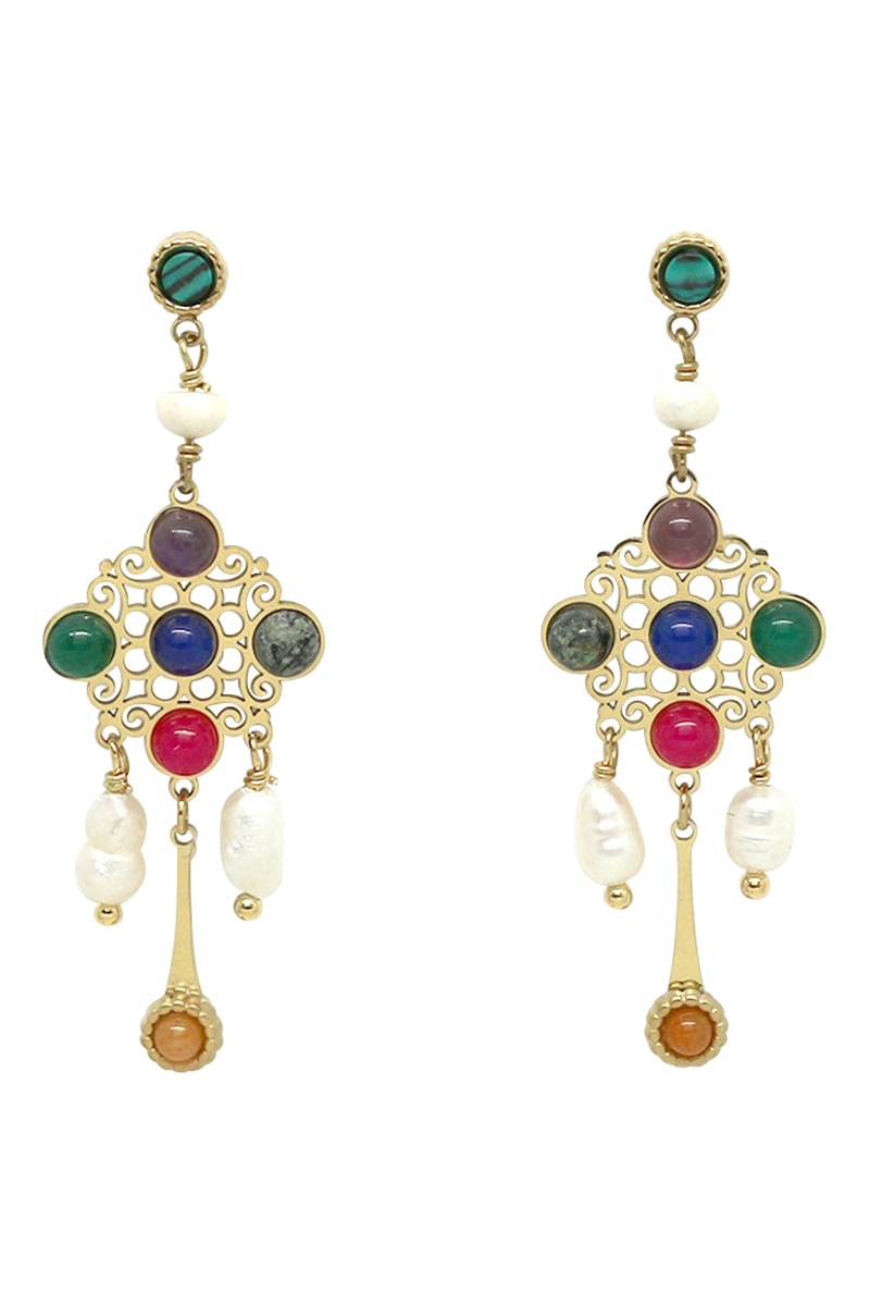Orecchini con 7 agate e 3 perle coltivate d’acqua dolce