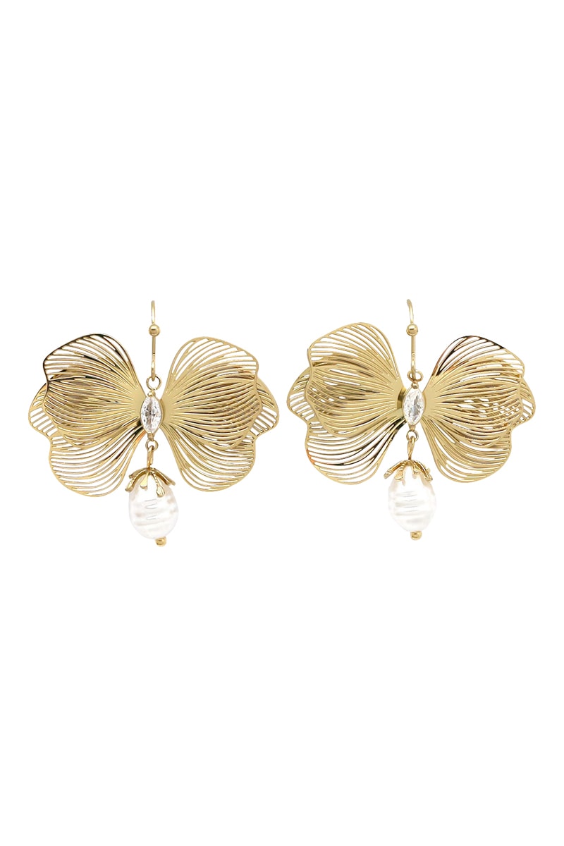 Orecchini pendenti con cristalli e una perla di imitazione.
