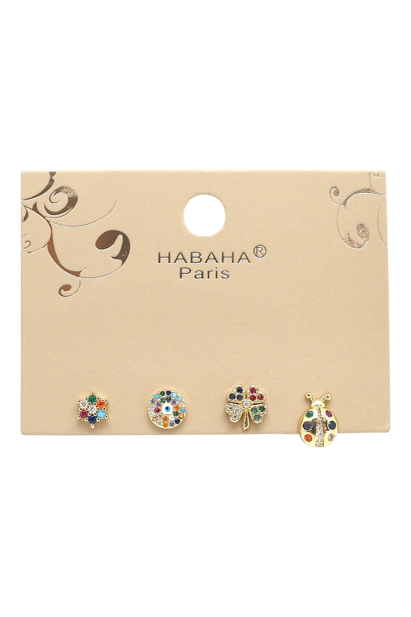 4 orecchini spaiati con cristalli.