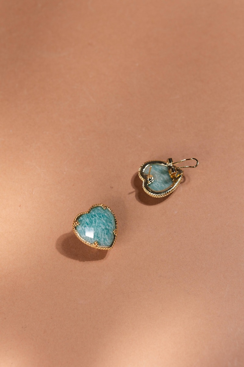 Materiali: ottone laminato oro fino giallo e amazzoniti