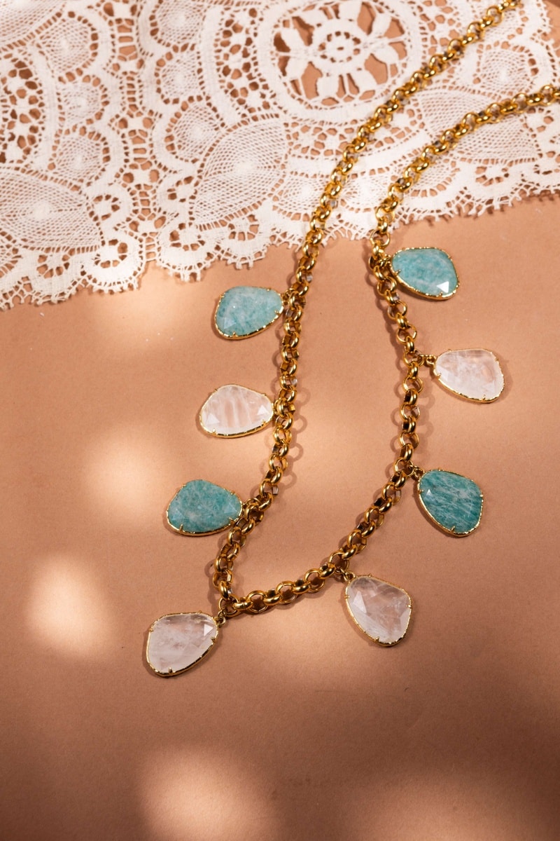 Collana - Cristallo di rocca e amazzonite