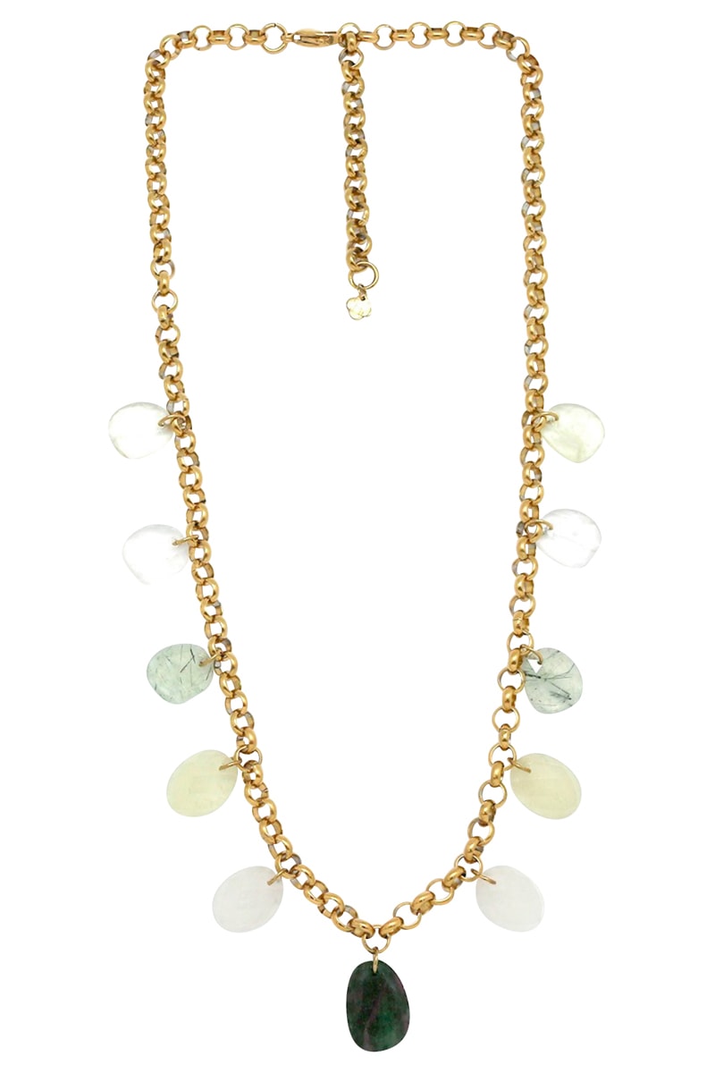 Collana - Cristallo di rocca, prehnite e rubino zoisite