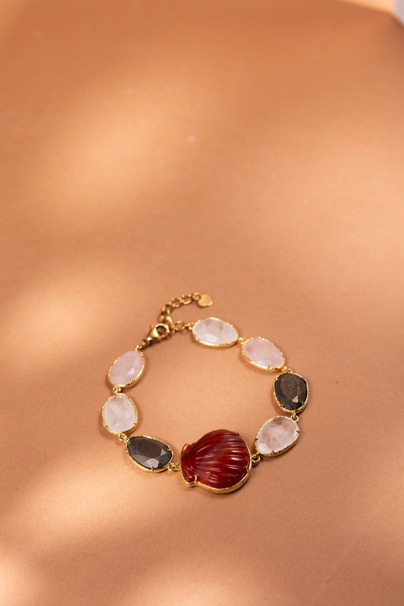 Bracciale con 5 quarzi, 2 piriti e una corniola.
