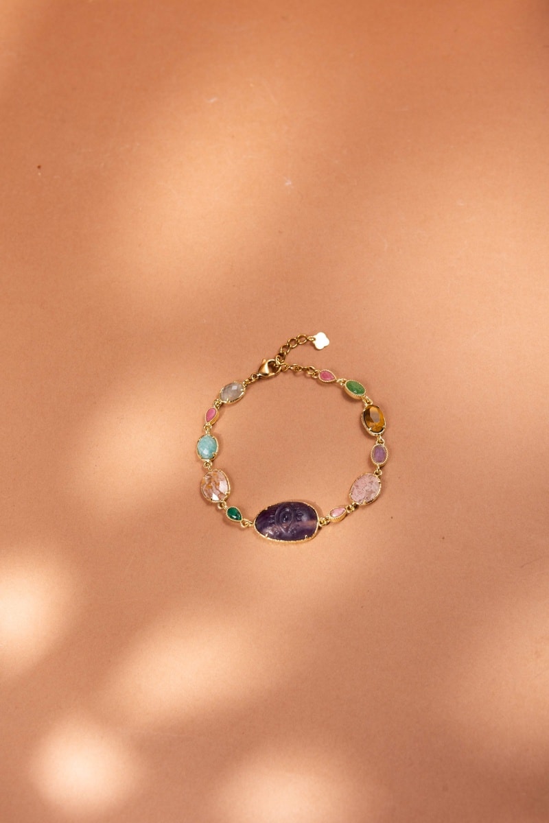Bracciale - Amazzoniti, ametiste, tormalina, malachite, occhio di tigre, rubino zoisite e fluorite