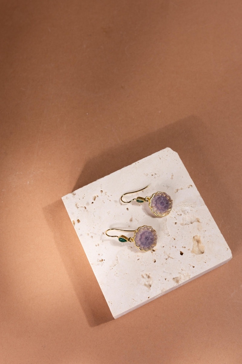 Orecchini laminato oro fino giallo - Fluoriti e malachiti