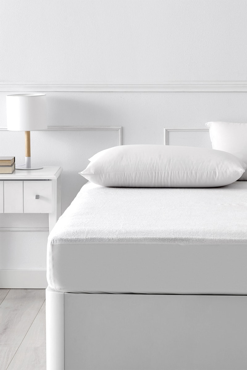 Questo coprimaterasso in spugna di cotone con trattamento all’aloe vera possiede proprietà naturali calmanti e rigeneranti ed è consigliato per le persone con pelle sensibile.