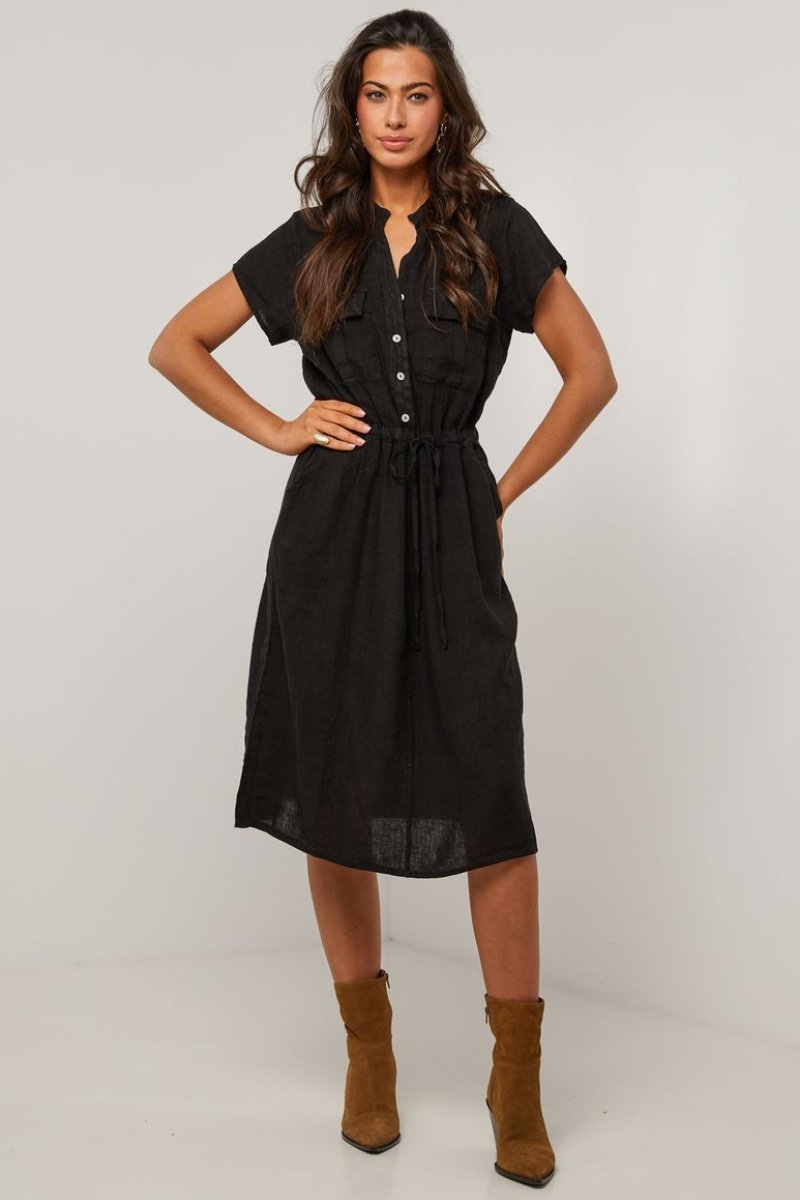 Abito a camicia in lino - Nero