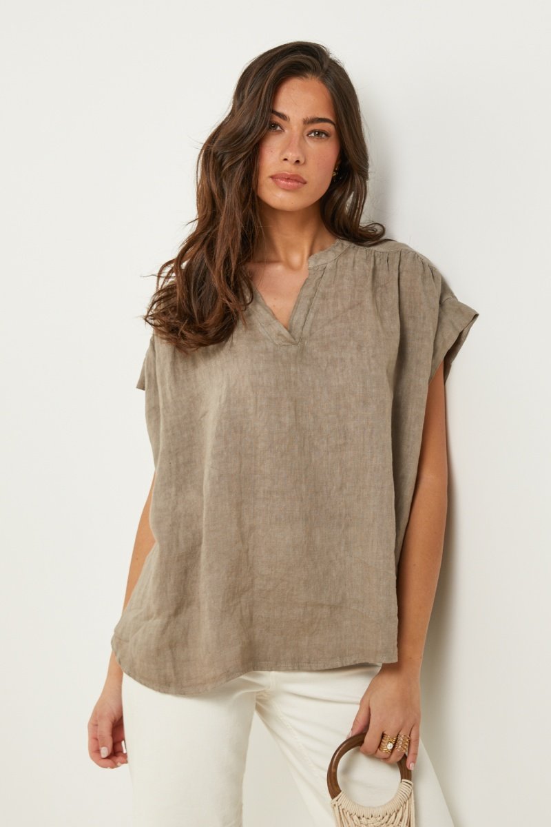 Top loose in lino a maniche corte.