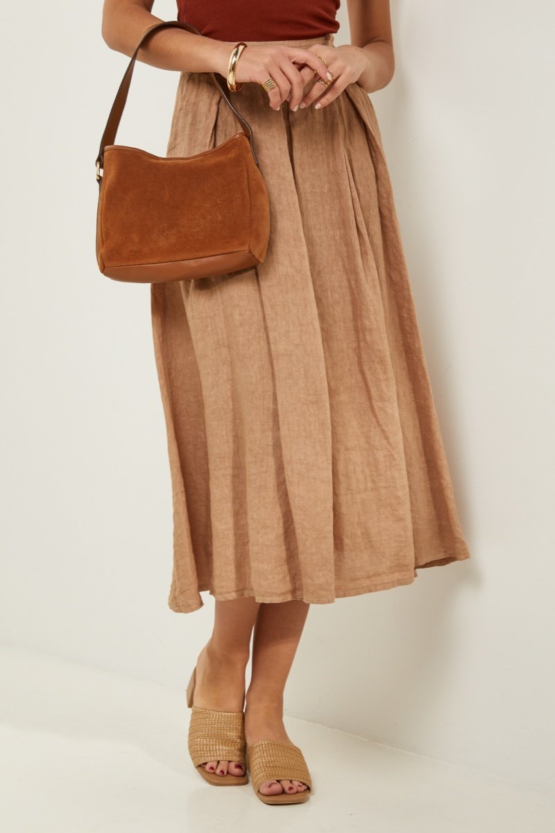 Gonna lunga con pieghe in lino.